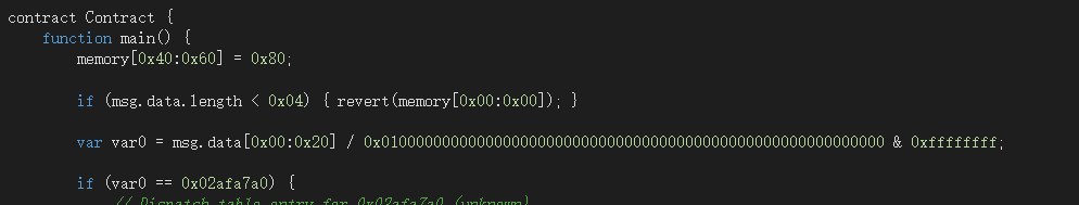 - 要求 msg.sender == storage[0x00](所以最开始肯定定义了address public owner这种,并且这里大概率使用了onlyOwner来修饰这个函数)